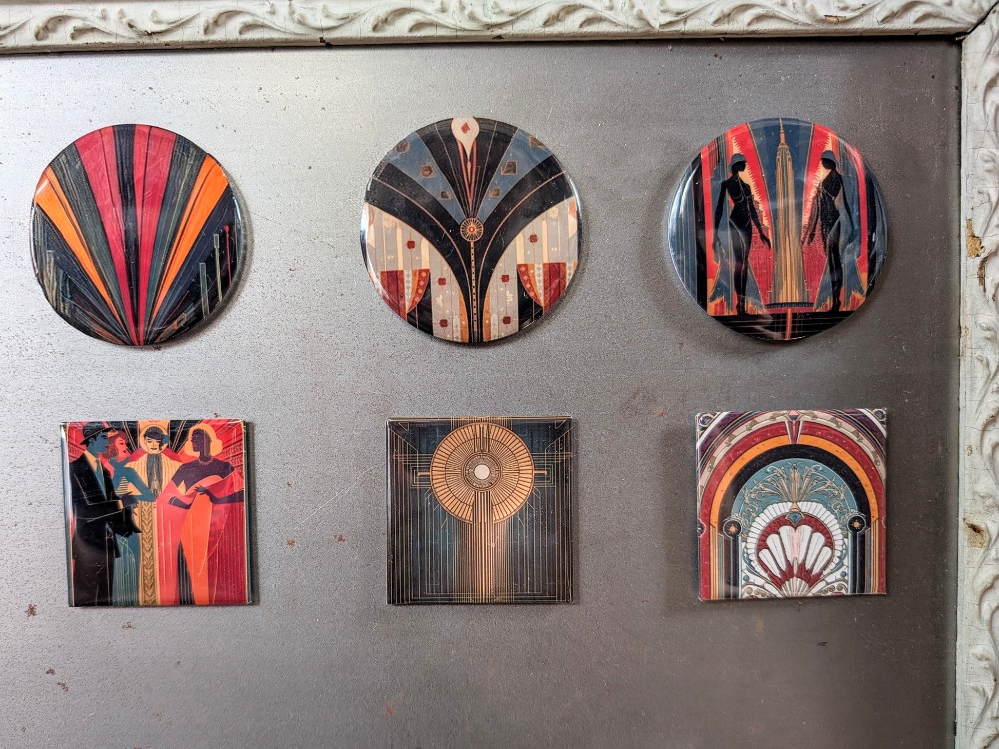 Step into the glamour of the Roaring Twenties with this stunning Art Deco magnet collection. Each piece features elegant geometric patterns, metallic accents, and bold lines inspired by the opulent style of the Jazz Age. Crafted with premium materials, these magnets are as sturdy as they are sophisticated. Perfect for bringing a touch of vintage luxury to your fridge, locker, or workspace.